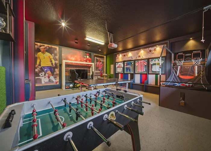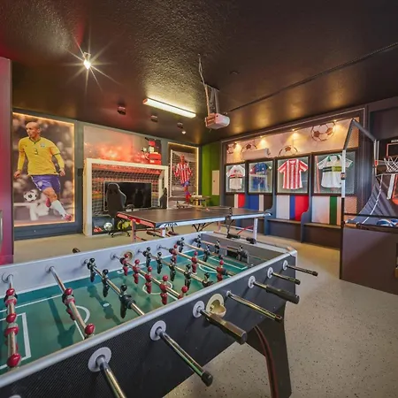 La villa New Themed 08 Bedrooms At Encore Resort Orlando está situada a unos 25 minutos a pie de Jack Nicklaus Course e invita a los huéspedes a practicar billar. Situada en el barrio Celebration de Orlando, esta villa ofrece una piscina cubierta, además de una piscina privada.